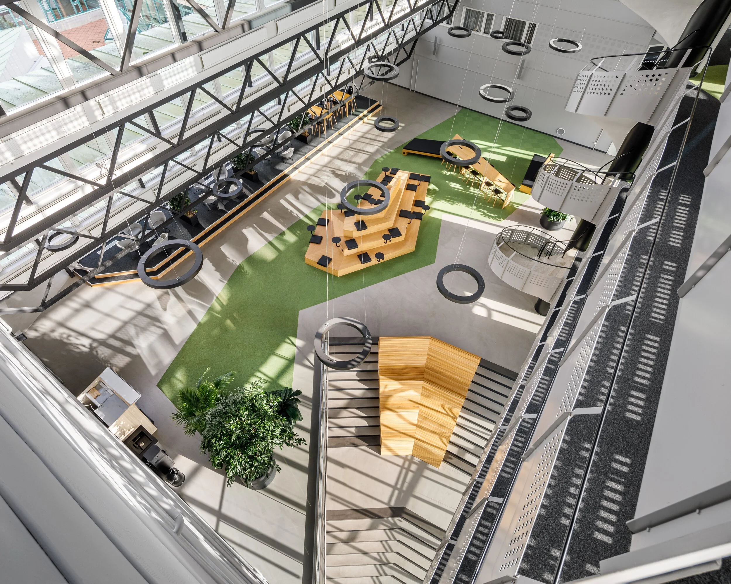 – Det slarvas mycket med belysningen. När det kommer till kontor är det en av de viktigaste bitarna enligt mig. Det handlar om att skapa bubblor av ljus och områden med olika belysning för att skapa mer liv. Sen ska det finnas en variation i sittandet, med en blandning av ståbord, barstolar, vanliga stolar, och soffor. Målet är att man ska bli överraskad i olika miljöer och att man ska få små upplevelser när man rör sig i lokalen.