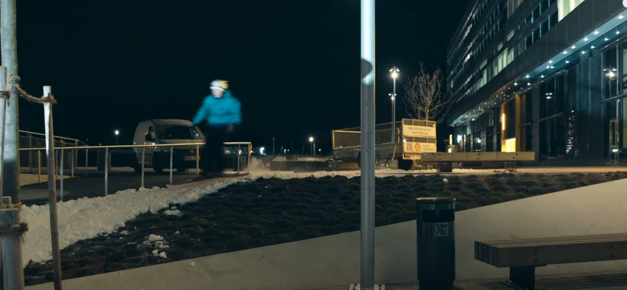 Freestyleskidåkaren Jesper Tjäder åker Urbana skidor vid Kista Nod. Foto: Antimedia för Redbull