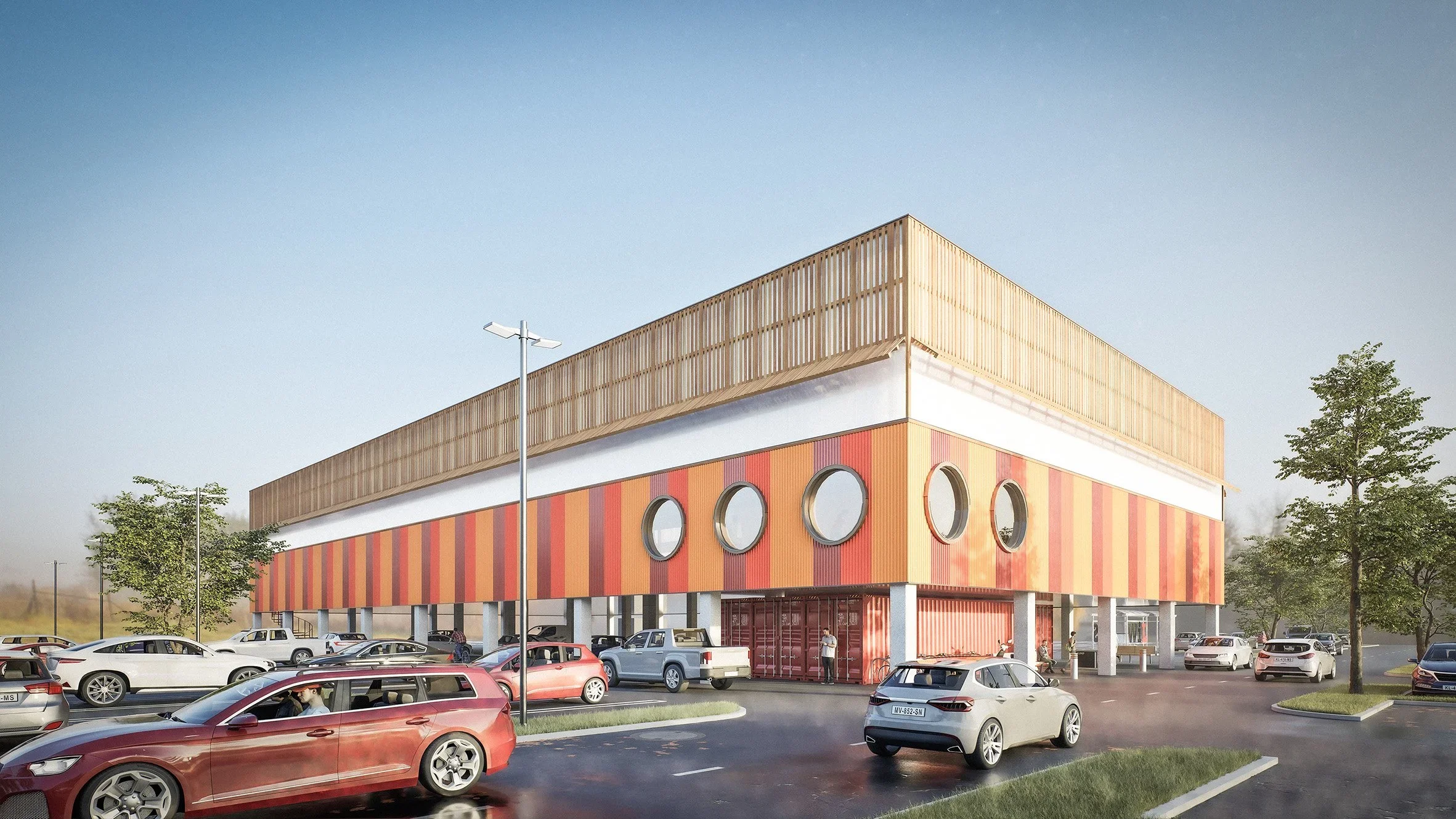 Det finns ett stort behov av idrottshallar, men på många ställen finns ett överskott av parkeringsplatser. Den insikten utgör grunden för Gatuns utvecklingsprojekt: en idrottshall som står på pelare över befintlig parkeringsyta – yteffektiv, hållbar och med potential att stärka platsens identitet.
